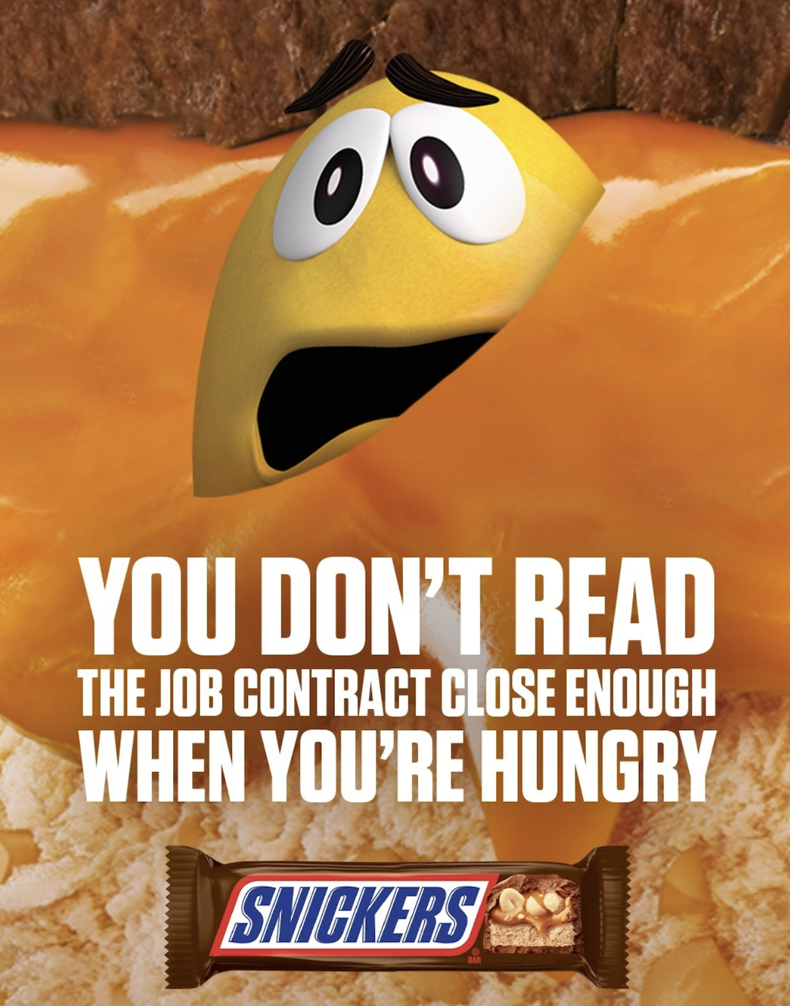 Yellow really pushed himself out of his comfort zone and took an a role as Snickers new spokescandy, appearing in print and Social. While Red cashed out, and cashed in on his fame by selling his own merchandise on eBay, that fans actually bid on.